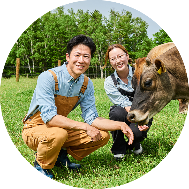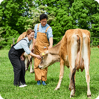 お客様においしい牛乳をお届けすることで、人にも牛にも幸せな牧場を運営しています。