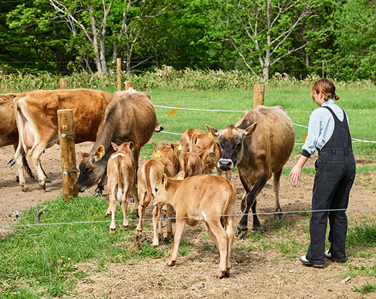 我々が牛と共に運営する"ジャージーの箱庭"では、牛たちが本来の美しい姿でいられるように10頭以下の超少頭数飼育で家族同然の暮らしをしています。