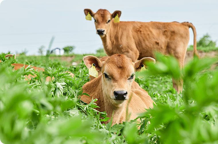 新鮮で栄養価の高い草を食べ、栄養をゆっくりと消化吸収するため栄養満点で濃厚な乳が作られます。